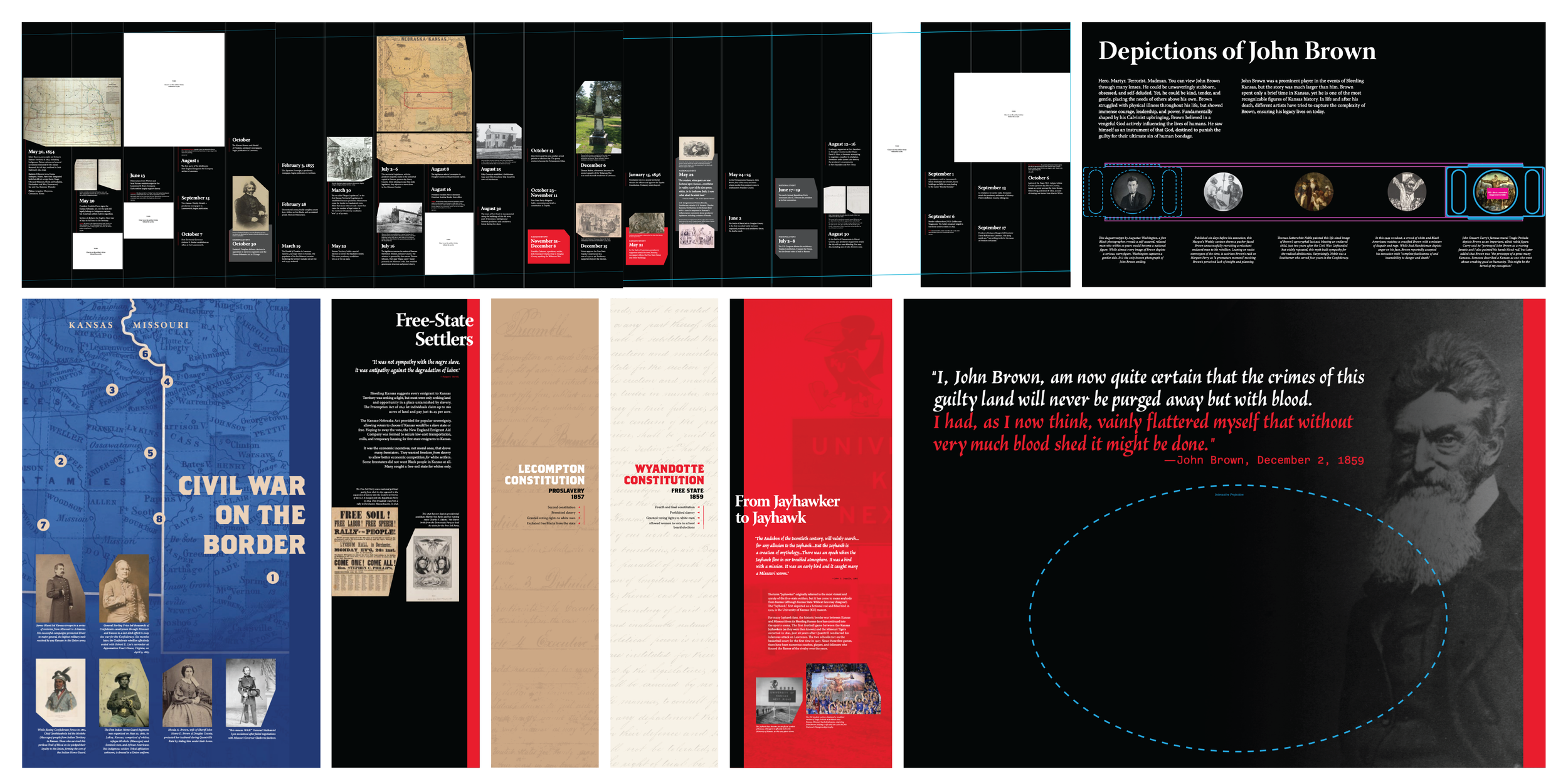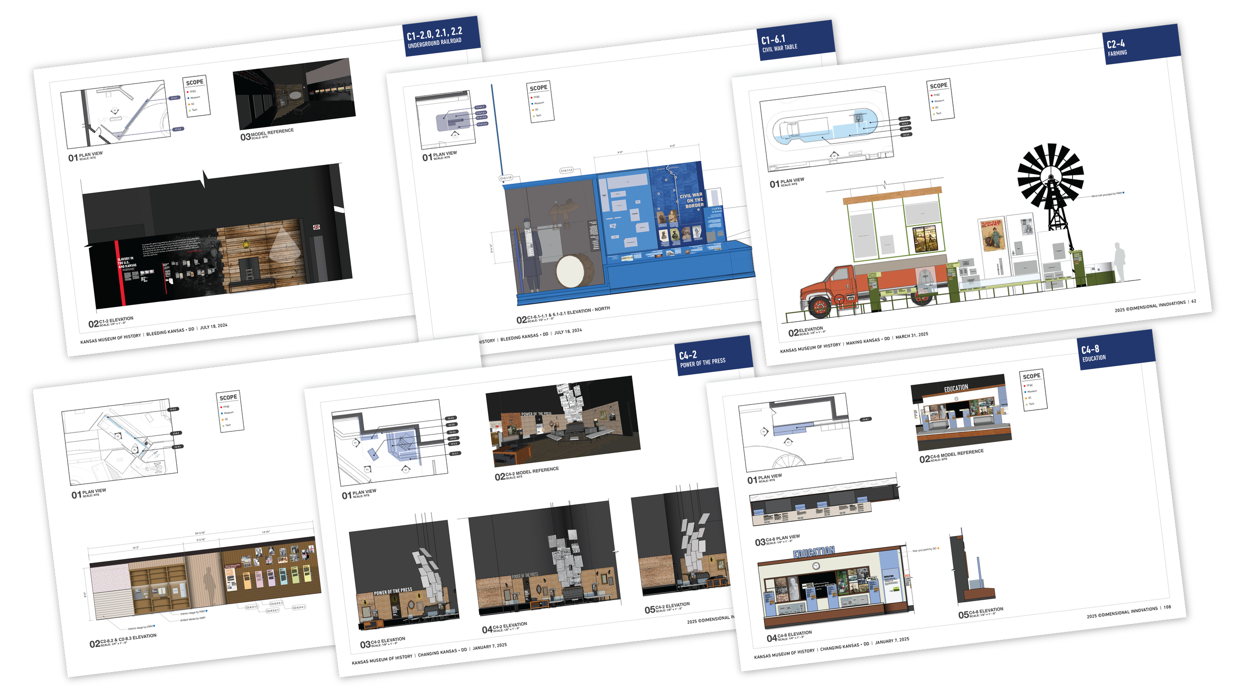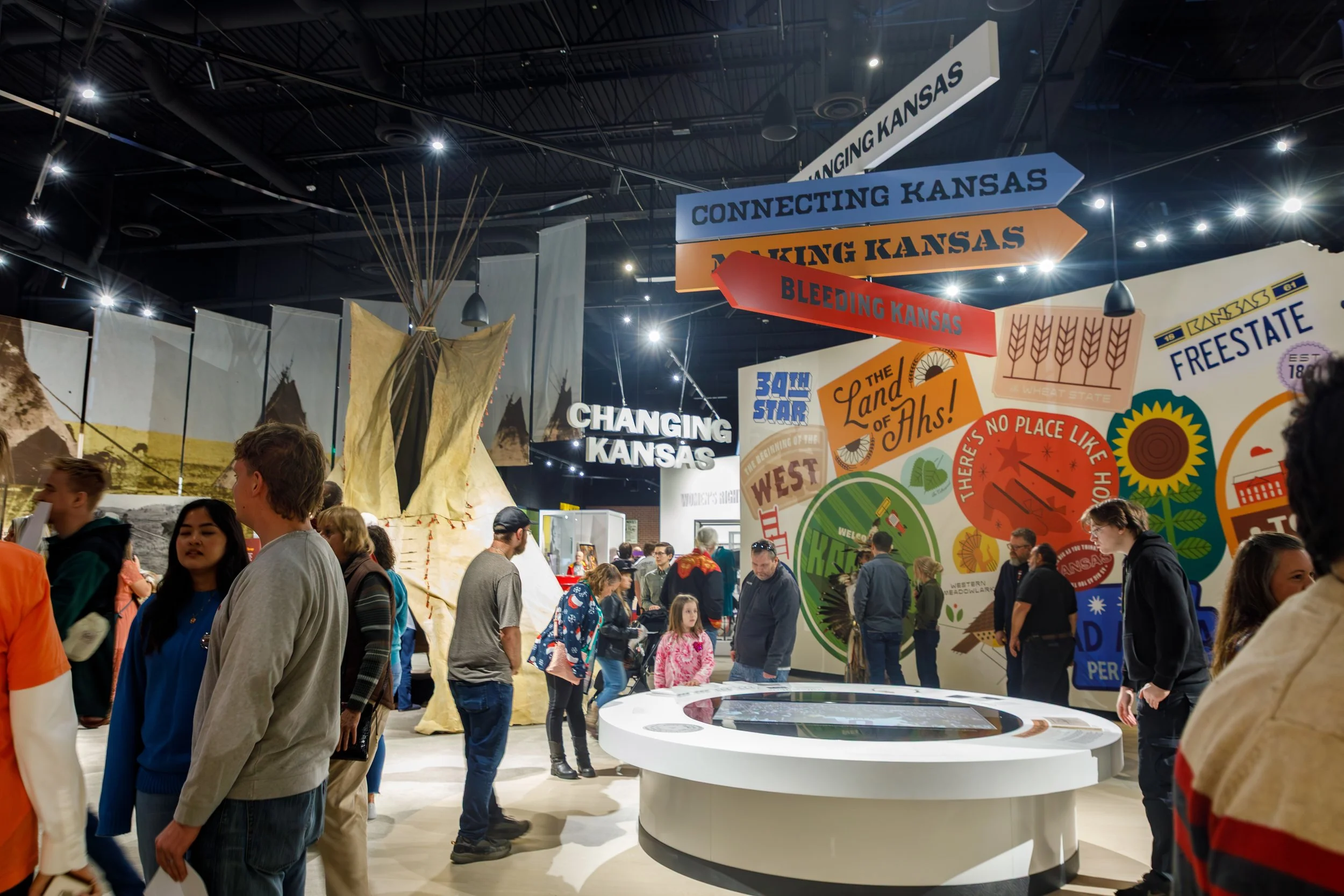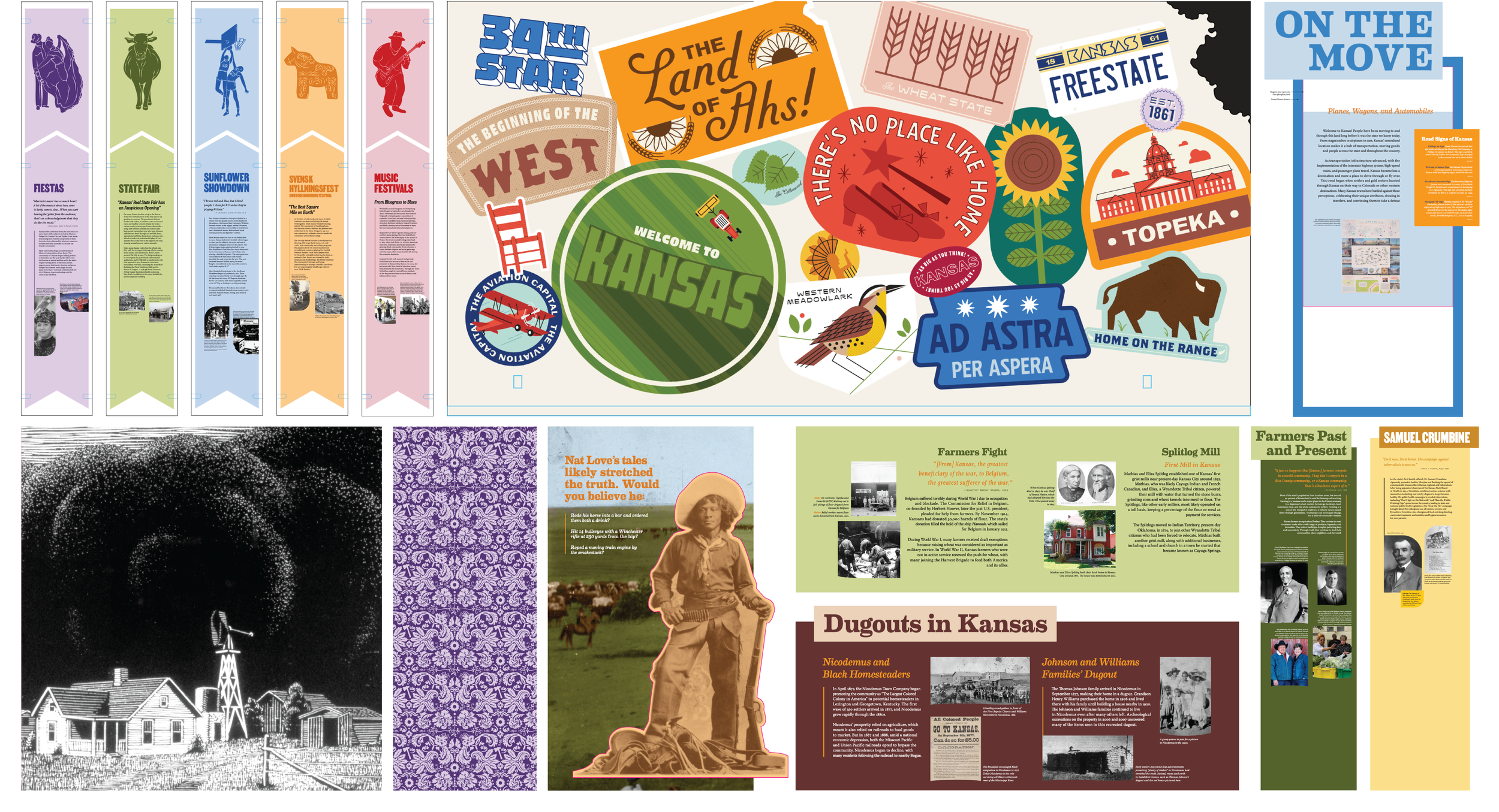 At Dimensional Innovations, I played a key role in the complete redesign of the Kansas Museum of History. The project began with a full demolition and reimagining of the space, followed by the creation of a new floor plan that supported the museum’s narrative goals. I contributed to exhibit concept development, built refined models, produced detailed drawings for engineering, designed user flow for both digital and manual interactives, and developed final graphic artwork. Throughout the process, I partnered with the client to connect design decisions to their storytelling, creating an engaging visitor experience. This was my most comprehensive and longest-running project to date.