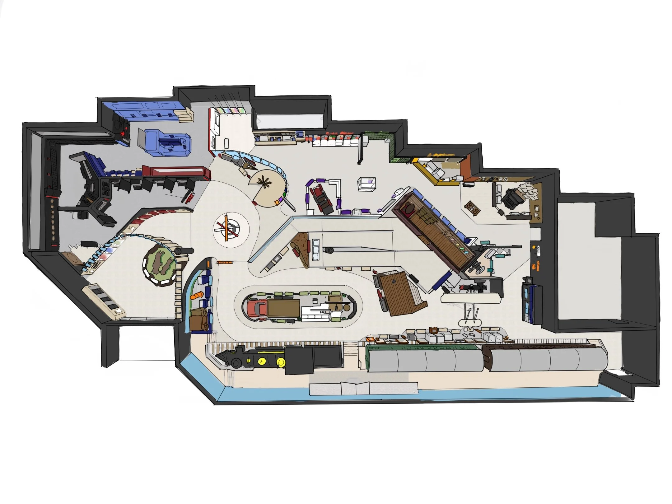 Worked with the team to develop the floor plans and layout of the galleries. This included determining the best format and placement of the ramp that elevates the visitor in the center of the space.